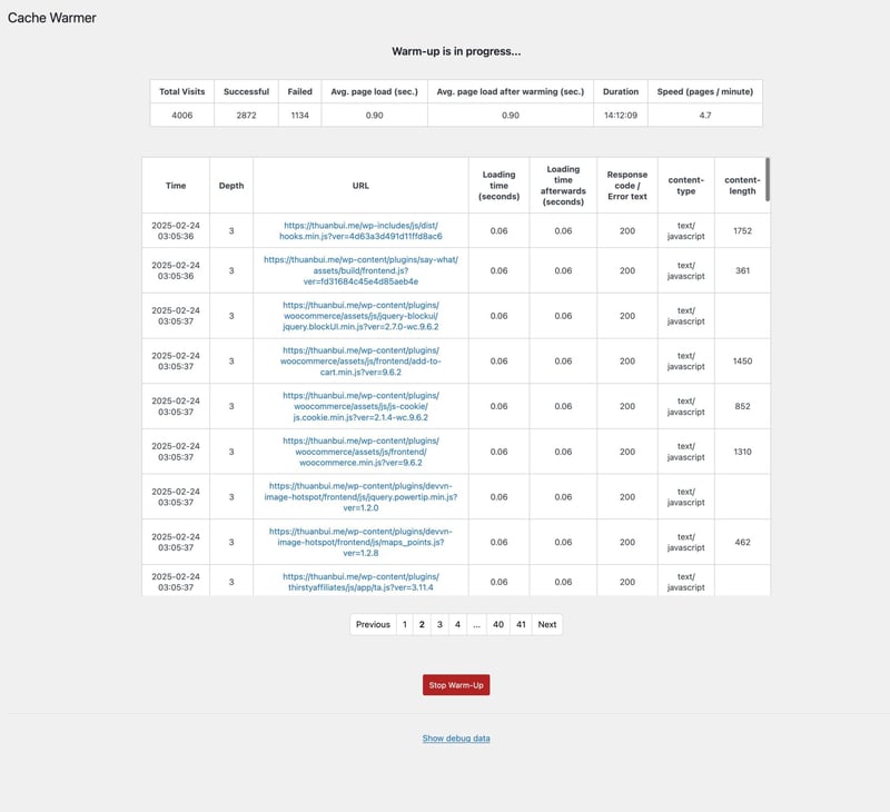 Truy cập vào Dashboard của Cache Warmer để xem log về quá trình hoạt động.