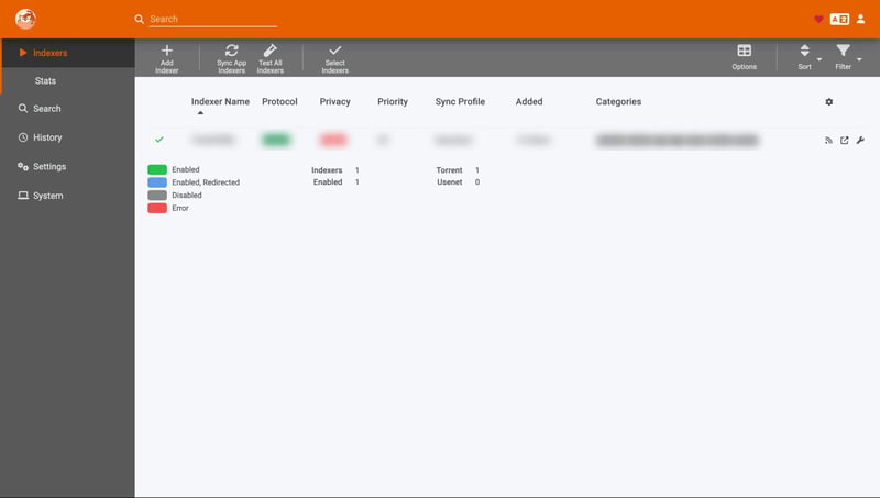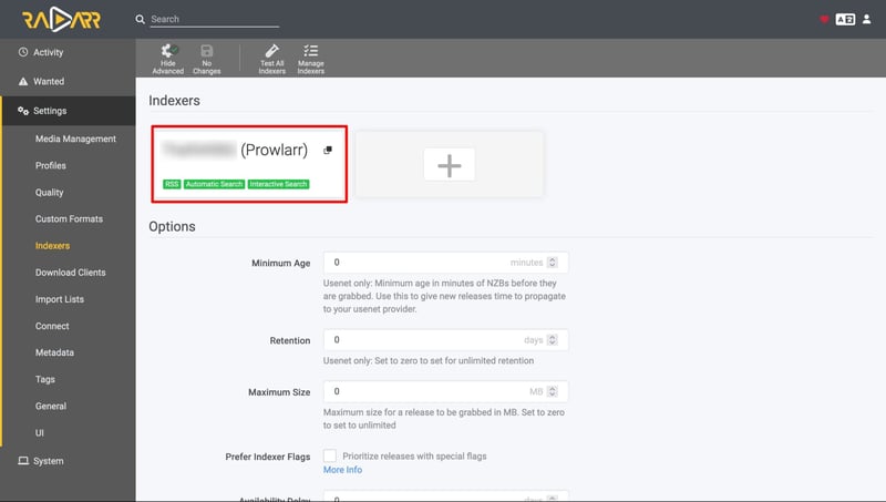 Nếu kết nối thành công, quay lại vào mục Indexers của Radarr, bạn sẽ thấy nó tự thêm vào 1 mục mới như bên dưới