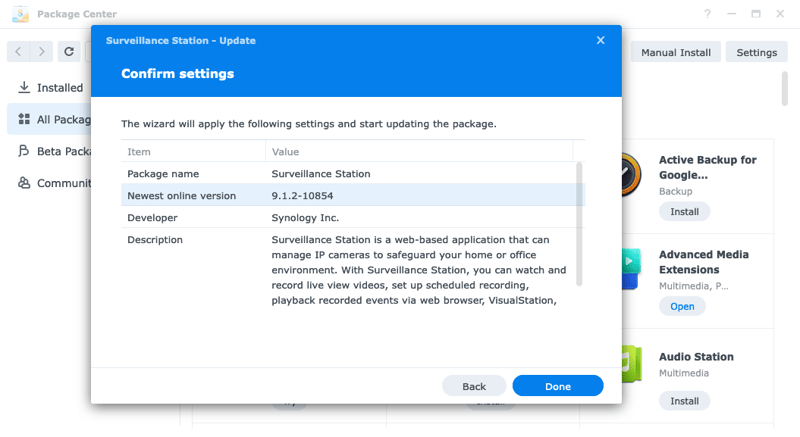 2. Cài đặt Surveillance Station 9.1.2