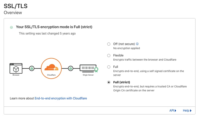 Truy cập thêm vào mục SSL/TLS vào chọn Full (Strict)