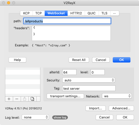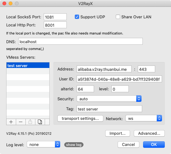 Dưới dây là cách thiết lập V2Ray Client MacOS sử dụng V2RayX. Bạn có thể áp dụng các thông số tương tự cho các client khác.