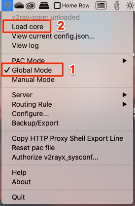 - Global Mode: kích hoạt chế độ System Proxy để toàn bộ mạng đi qua Web Proxy của V2Ray