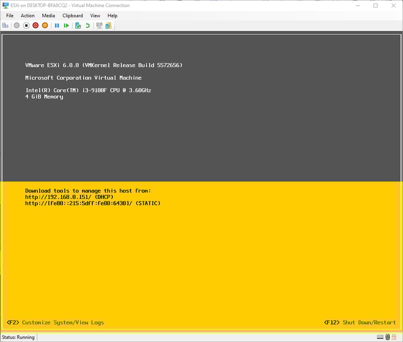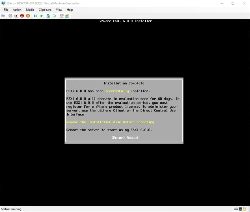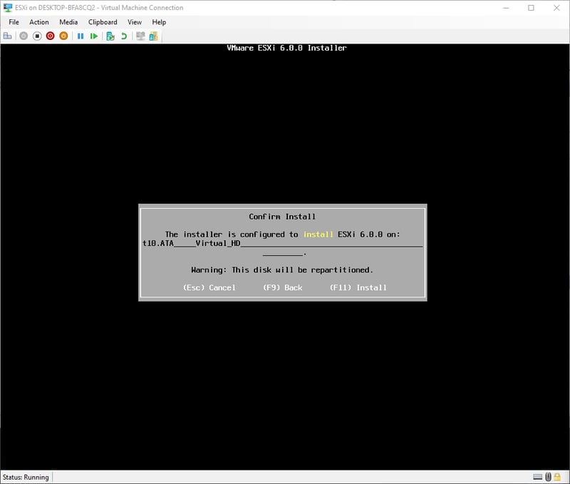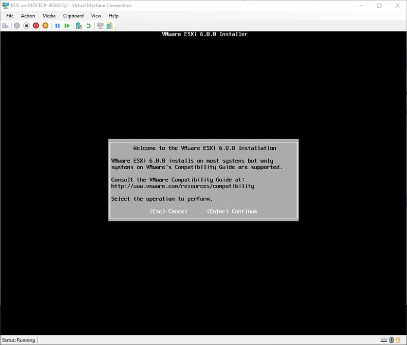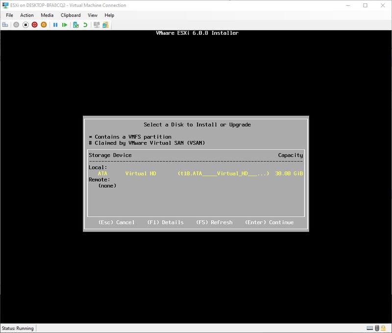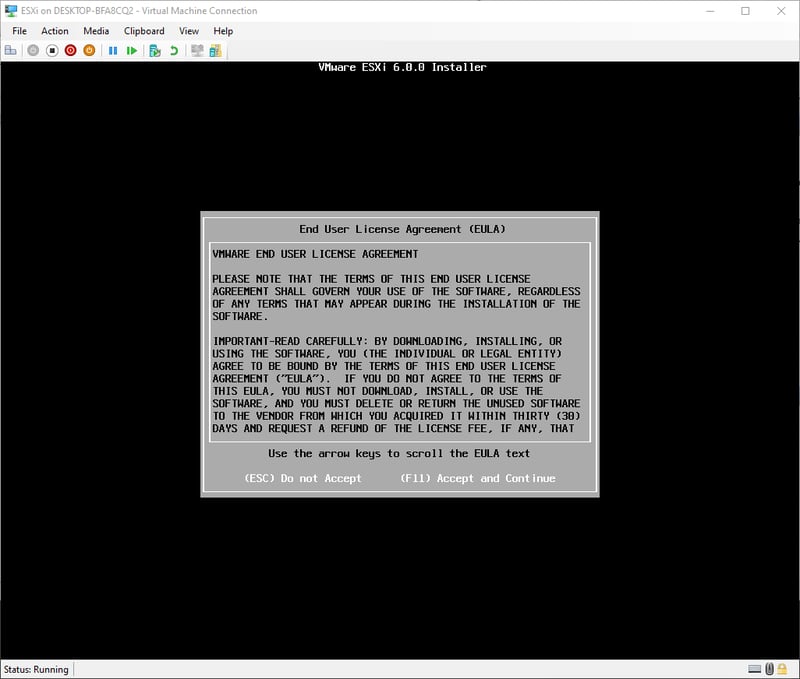 Do mình cài đặt trực tiếp lên Intel NUC nên không tiện việc screenshot. Tuy nhiên, các bước cài đặt y hệt như mình đã từng cài đặt ESXi 6.0 lên Hyper-V nên mình sẽ dùng hình cũ.