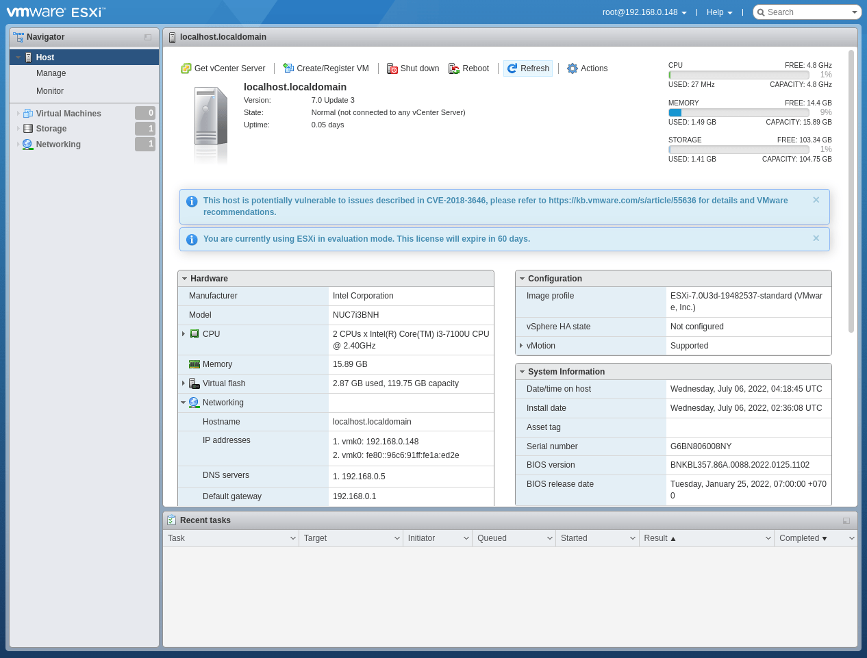 Em Intel NUC của mình thuộc đời 7 nên có thể yên tâm cài bản ESXi 7 U3 mới nhất để nghiên cứu. Bài viết này mình sẽ chia sẻ cách cài đặt ESXi 7.0 Update 3 lên Intel NUC7i3BNB.