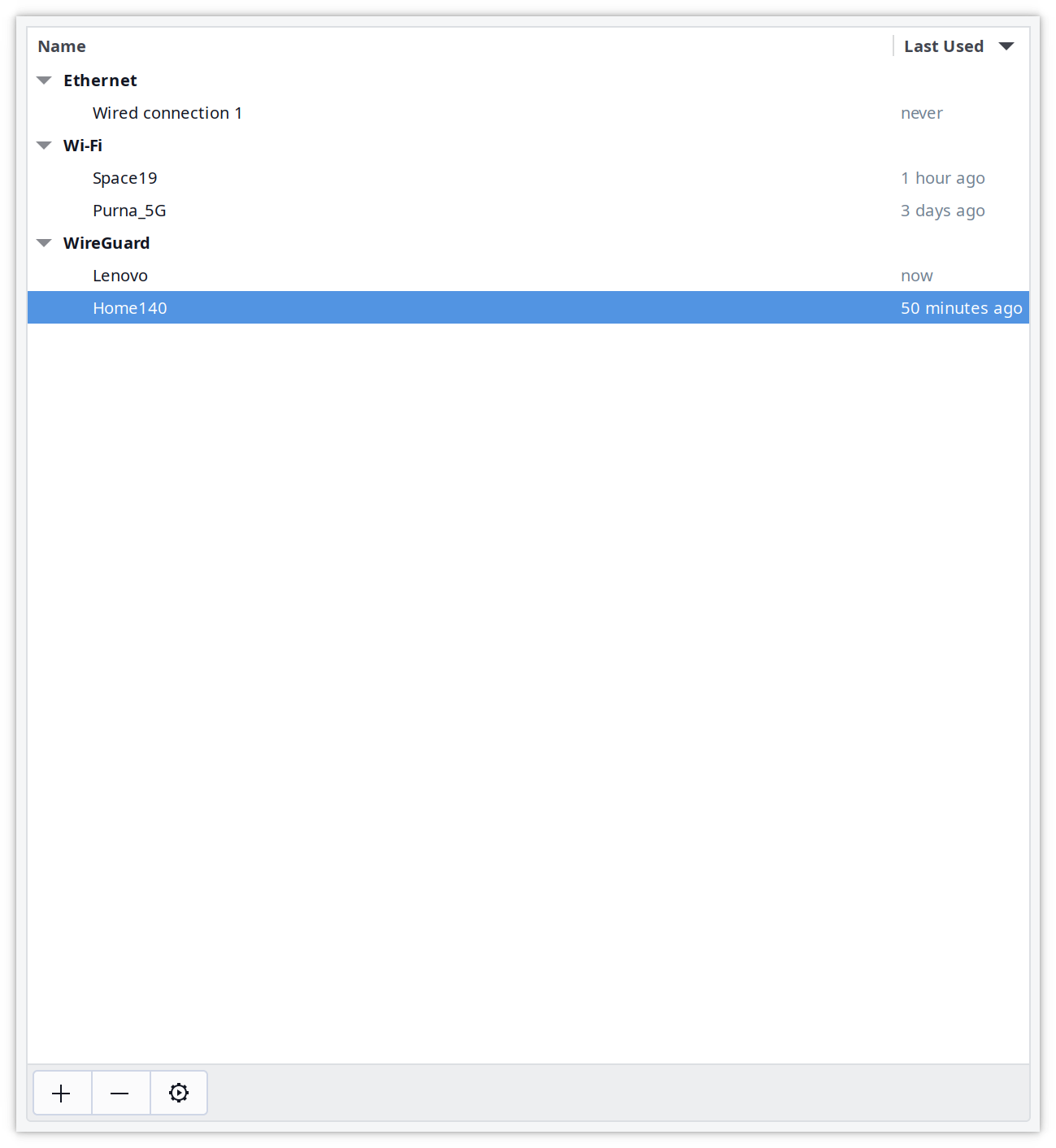 Mặc định trong máy đã có cài đặt và kích hoạt sẵn Network Manager để quản lý kết nối mạng. Công cụ này hỗ trợ tạo WireGuard Interface nên mình sẽ sử dụng cái này luôn cho dễ quản lý.