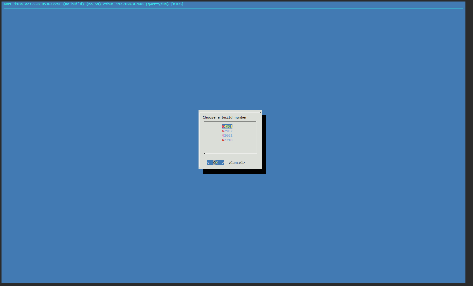 Các bước cấu hình bootloader thao tác y hệt bài hướng dẫn cài DSM 7.1. Chỉ khác là ở phần build number, chọn 64561.