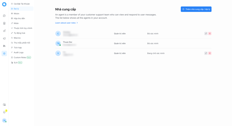 Truy cập vào phần Đại lý để tạo thêm tài khoản cho các nhân viên hỗ trợ khách hàng