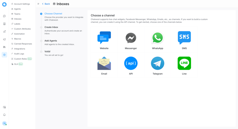 Chatwoot hỗ trợ các kênh giao tiếp sau