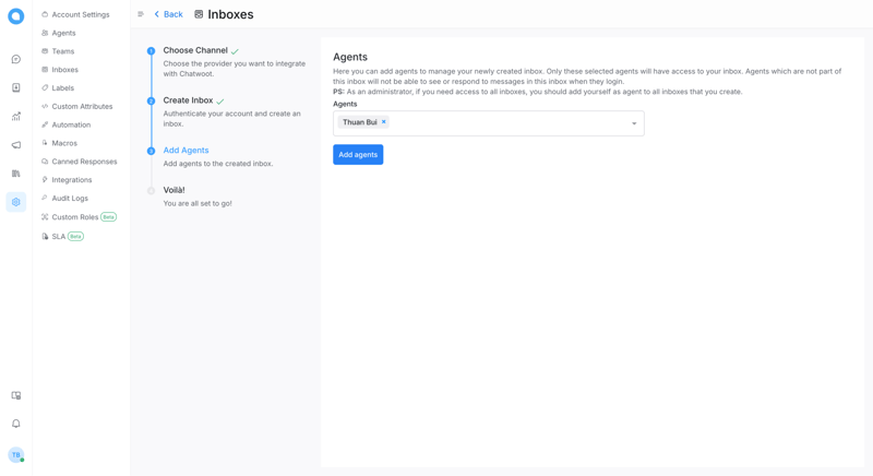 Tiếp theo, chọn nhân viên (Agents), bấm Add Agents