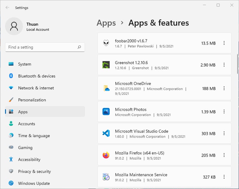 choco list --localonlyPS C:\WINDOWS\system32> choco list --localonlyChocolatey v0.10.15chocolatey 0.10.15chocolatey-core.extension 1.3.5.1chocolatey-dotnetfx.extension 1.0.1chocolatey-visualstudio.extension 1.9.0chocolatey-windowsupdate.extension 1.0.4dotnetfx 4.8.0.20190930foobar2000 1.6.7KB2919355 1.0.20160915KB2919442 1.0.20160915KB2999226 1.0.20181019KB3033929 1.0.5KB3035131 1.0.3python 3.9.6python3 3.9.6vcredist140 14.29.30133vcredist2015 14.0.24215.20170201visualstudio-installer 2.0.1visualstudio2017-workload-vctools 1.3.3visualstudio2017buildtools 15.9.38.018 packages installed.Ví dụ mình muốn xoá foobar2000, dùng lệnh