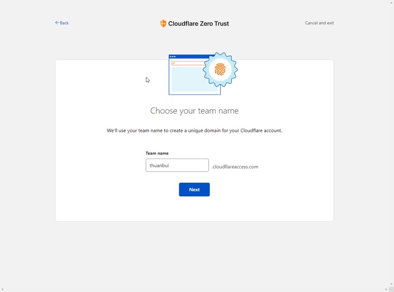 Tất cả các dịch vụ liên quan đến Cloudflare Tunnel được tập trung về 1 trang quản lý riêng gọi là Cloudflare Zero Trust. Ở lần đầu tiên truy cập, Cloudflare sẽ yêu cầu thiết lập các thông số cơ bản như dưới đây.