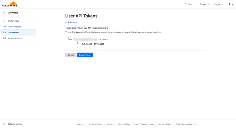 Ví dụ: bạn có thể tạo một API Token chỉ để cập nhật DNS, hoặc một API Token khác để quản lý Firewall Rules.