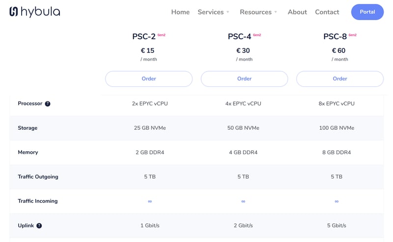 Mình đã muốn mua VPS của Hybula từ lâu giá niêm yết của VPS bên này khá cao nên vẫn chùn tay. Giá rẻ nhất là €15 / tháng cho VPS 2 x EPYC vCPU - 25 GB NVMe - 2 GB DDR4.