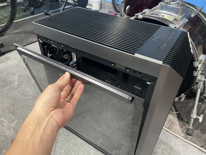 Nắp hông được làm bằng kính cường lực và được thiết đóng mở bằng nam châm, không dùng ốc. Thiết kế này giúp việc mở case tiện lợi hơn hẳn.
