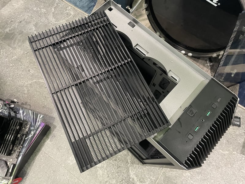 Phần nắp trên nóc case có thiết kế lưới thoáng, có thể tháo rời bằng cách bấm nút trên nóc. Thiết kế này giúp cho việc vệ sinh thuận tiện hơn hẳn. Có thể gắn thêm 2 fan 12cm ở vị trí này để tăng đối lưu gió cho case.