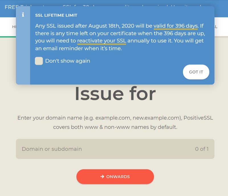 Sau khi lưu Private Key về máy, bấm tiếp ONWARDS để qua bước xác nhậ tên miền