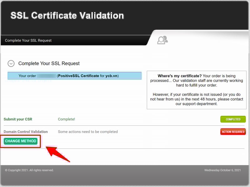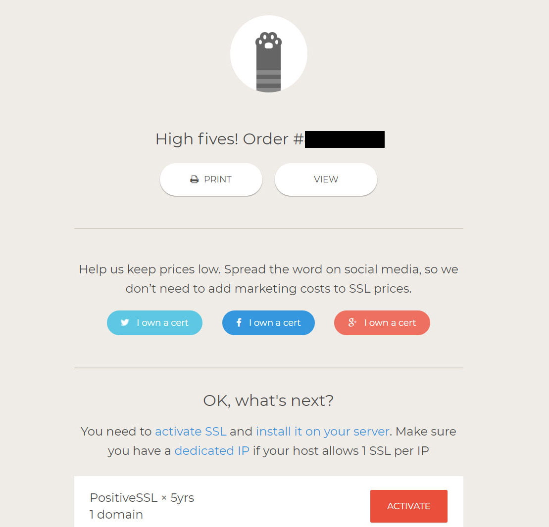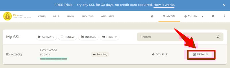 Sau khi đặt mua xong, mình bấm vào nút Activate để kích hoạt chứng chỉ SSL.