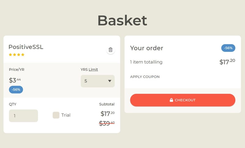 Mình chọn đặt mua chứng chỉ SSL tại SSLs.com, vì giá ở đây rẻ nhất: $3.44/năm (áp dụng khi mua 5 năm).