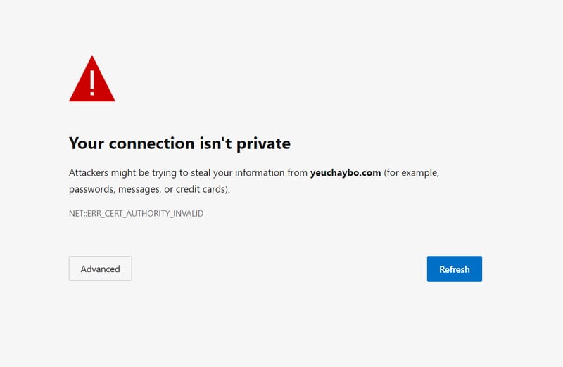 Sự thay đổi này khiến các thiết bị cũ sẽ không thể truy cập được các website sử dụng SSL của Let’s Encrypt (hàng triệu website). Khi truy cập sẽ bị báo lỗi: “Your connection isn’t private / Kết nối của bạn không phải là kết nối riêng tư” như dưới đây