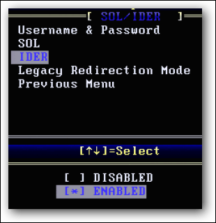 Chọn Enable cho tất cả các mục SOL, IDER và Legacy Redirection Mode