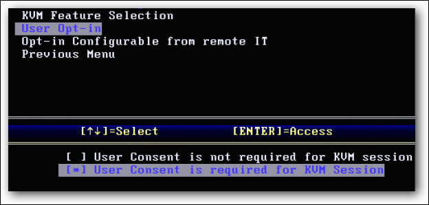 - User Consent is required for KVM session: cần phải có sự đồng ý của người đang sử dụng máy mới được quyền truy cập điều khiển từ xa.