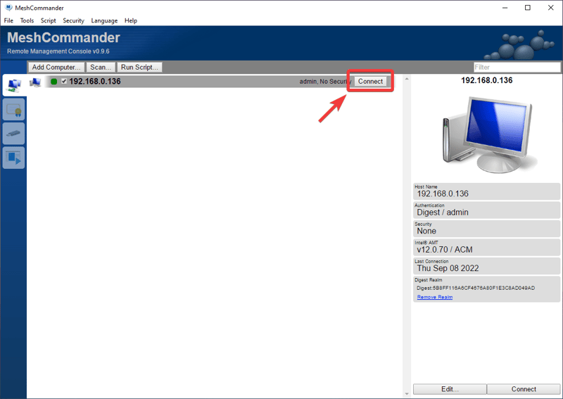 Tải MeshCommander ở đây: https://www.meshcommander.com/meshcommander, và cài đặt vào một máy tính khác nằm trong cùng mạng LAN với máy tính đã kích hoạt AMT ở trên.