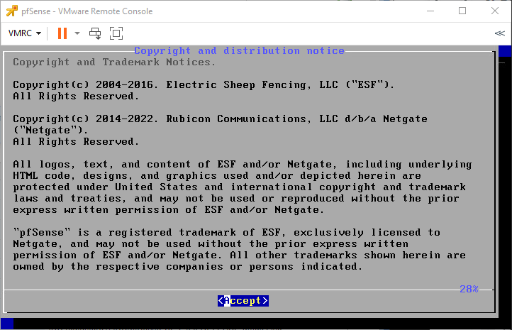 Khởi động máy ảo và bắt đầu cài đặt pfSense theo các bước dưới đây