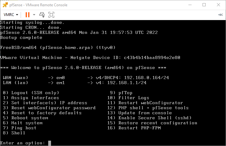 Việc cài đặt pfSense lên máy ảo ESXi 7.0 vậy là xong.