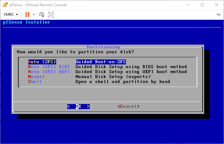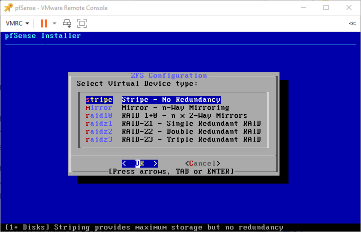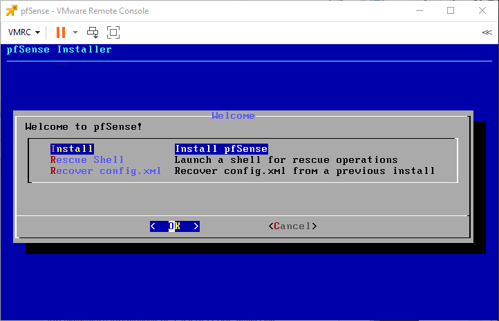 Chọn Install pfSense, bấm OK