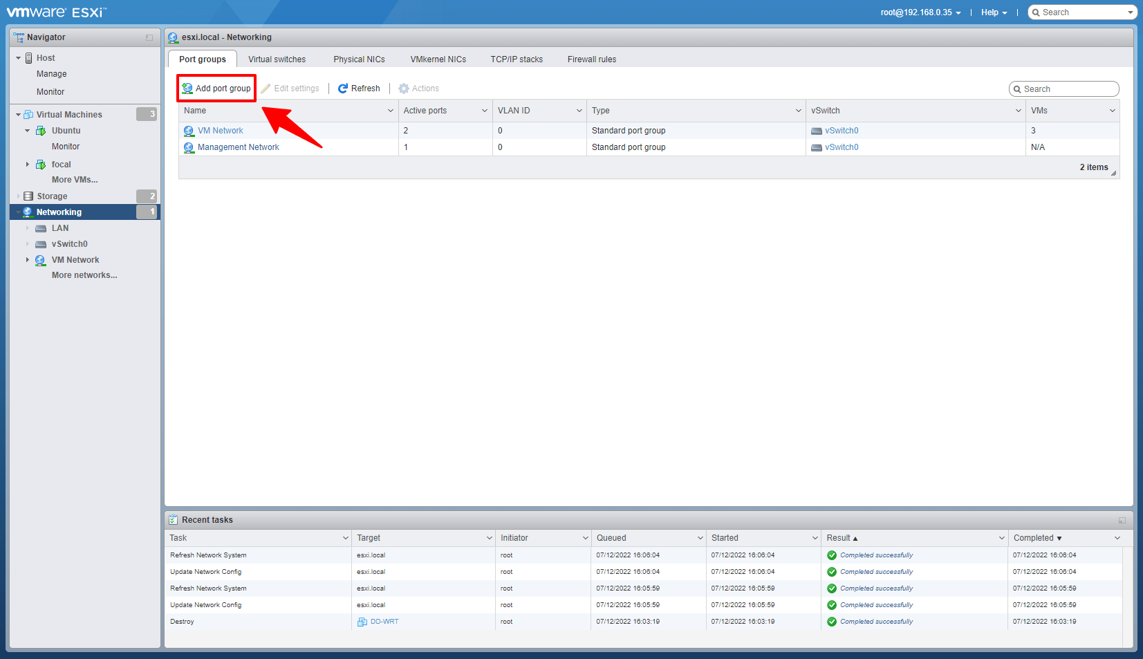 Tiếp theo chuyển qua tab Port groups, bấm vào Add port group để tạo mới.