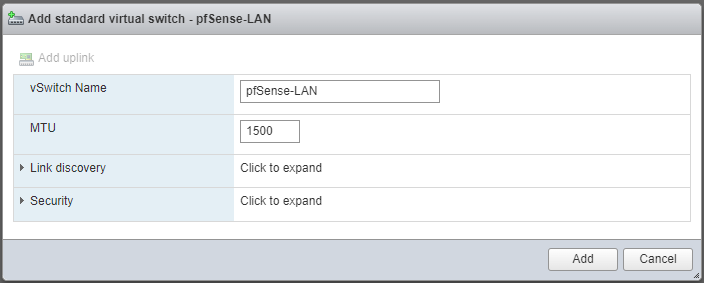 Tạo thêm 1 port group nữa với tên gọi pfSense-LAN và kết nối vào virtual switch pfSense-LAN.