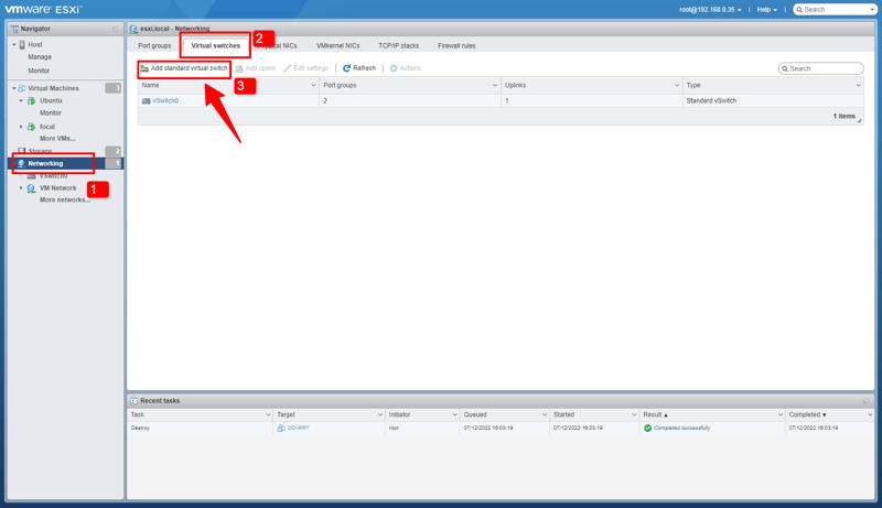 ESXi giờ đã 2 virtual Switch: vSwitch0 và pfSense-LAN