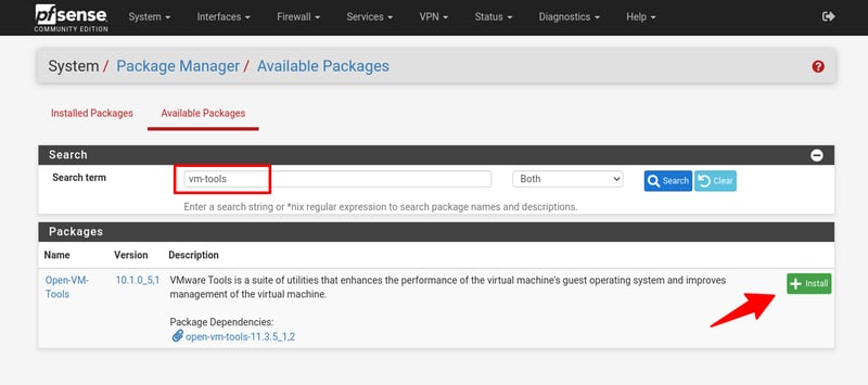 Sau đó truy cập vào mục Package Manager để cài đặt Open VM Tools.