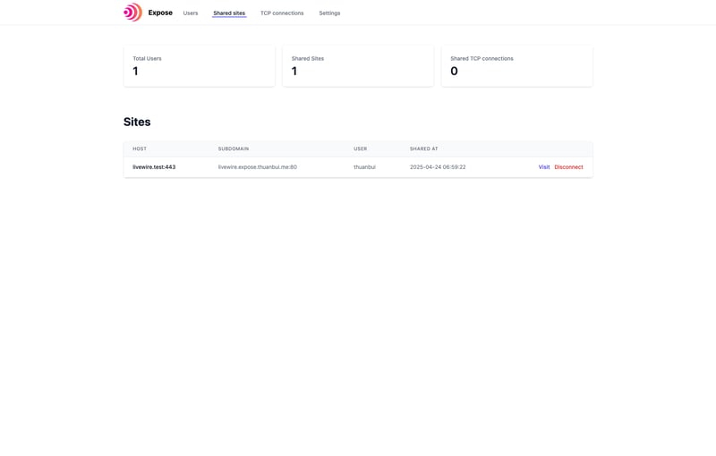 Khi tự thiết lập Expose Server, mình có thể chia sẻ thoải mái các website nội bộ ra Internet, mà không bị giới hạn số lượng / băng thông như khi sử dụng dịch vụ có sẵn của Expose.dev. Ngoài ra Expose còn cung cấp dashboard hiện đại, giúp việc quản lý users và sites tiện lợi.