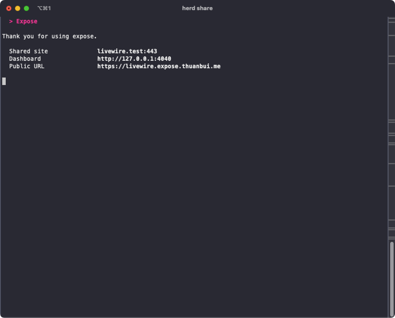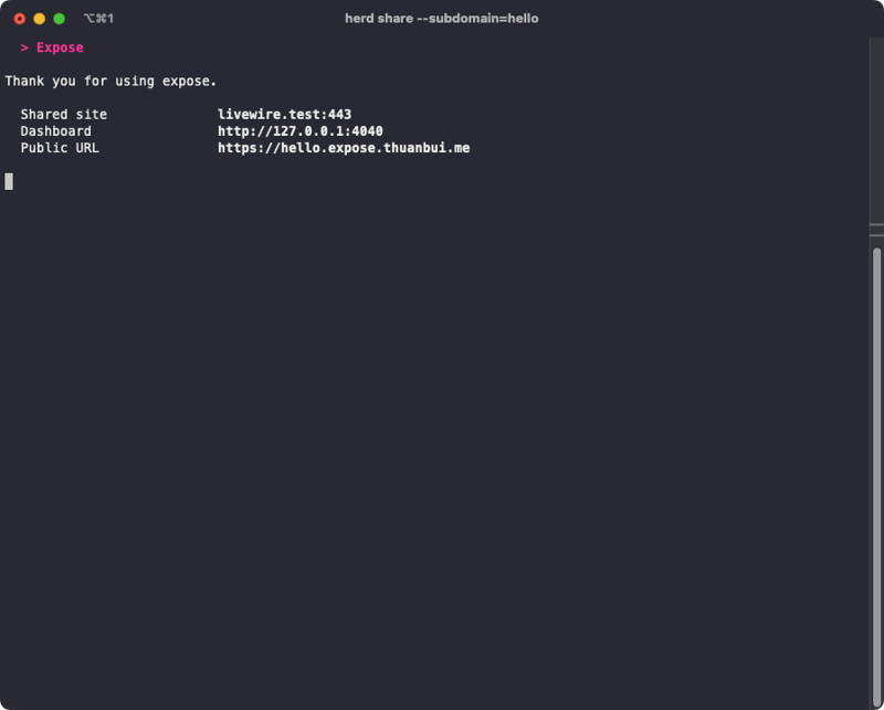 herd share --subdomain=helloPublic URL sẽ được cập nhật tương ứng.