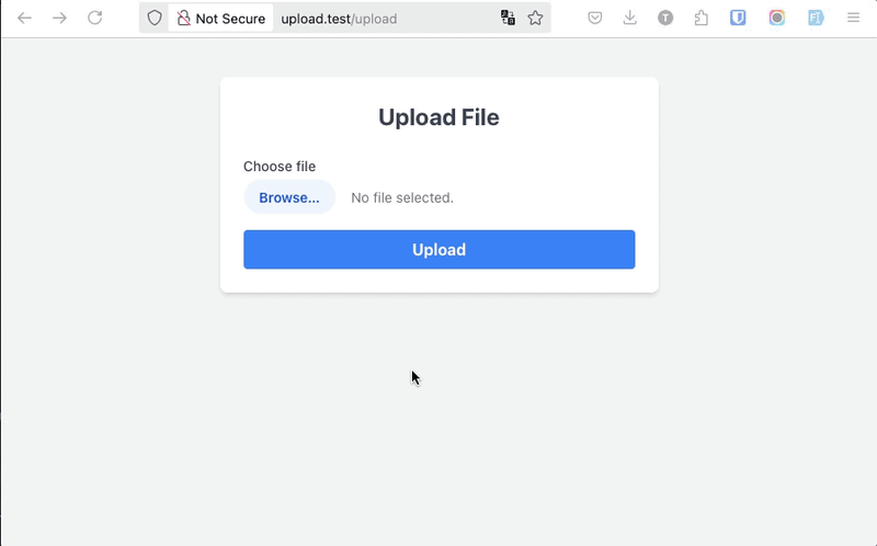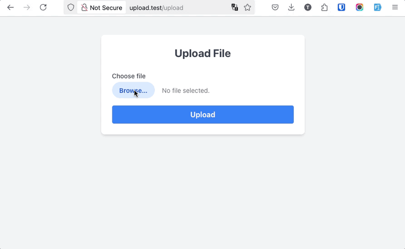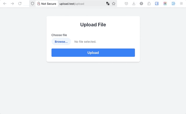 Thử nghiệm thử: truy cập http://upload.test, và upload file, Laravel sẽ lưu vào thư mục uploads và đổi tên file thành tên ngẫu nhiên.