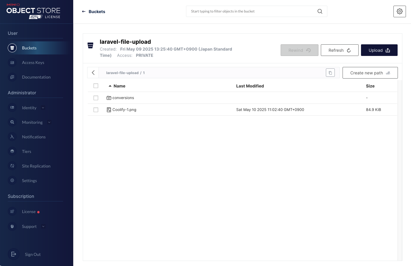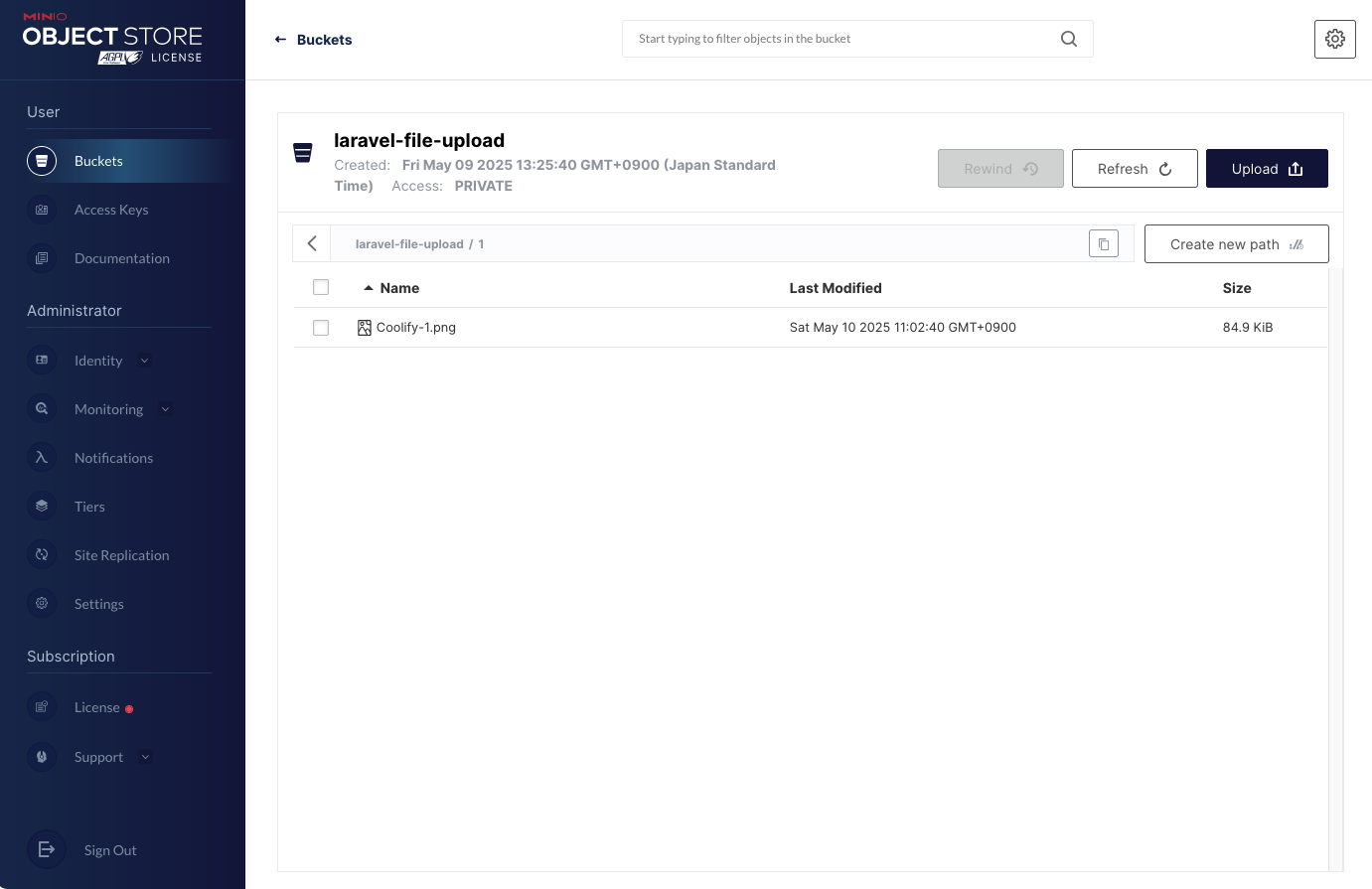 Kiểm tra trên MinIO, mỗi file sẽ được lưu trong 1 thư mục riêng, tên thư mục tương ứng với id của file trong table media
