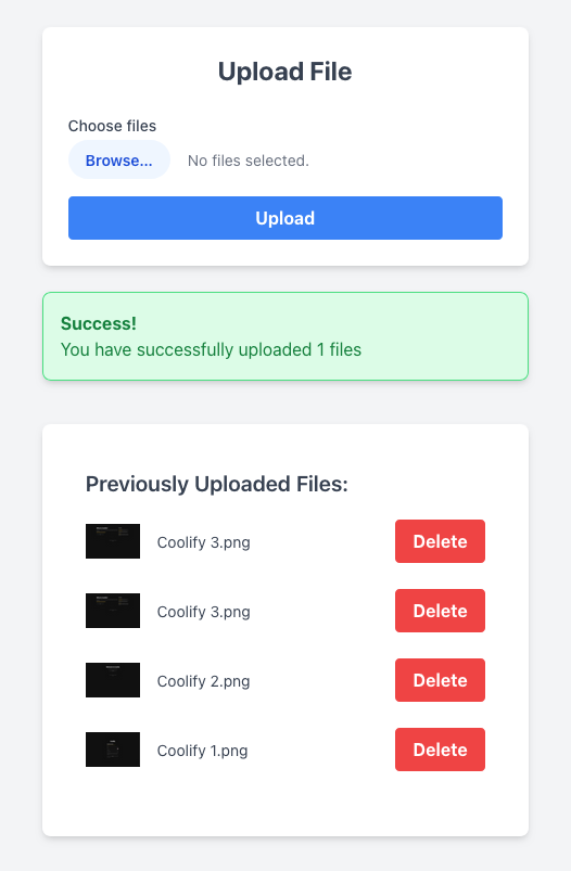 // Chuyển hướng người dùng về trang trước đó với thông báo thành công return back()->with('success', 'You have successfully deleted ' . $upload->original_filename); }4. Kiểm tra thực tế