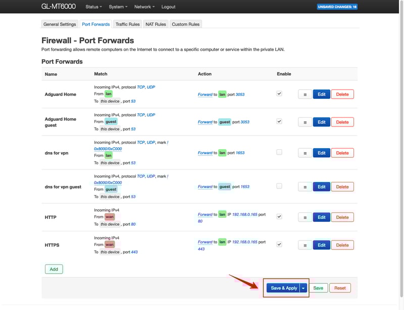 Bấm Save & Apply để lưu lại cấu hình Firewall.