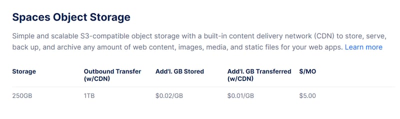 Với giá nền $5/tháng, Spaces cung cấp 250GB lưu trữ và 1TB Outbound Bandwidth, quá phù hợp với nhu cầu sao lưu dữ liệu của mình. Băng thông của việc sao lưu dữ liệu chủ yếu là đi vào (Inbound), không bị tính phí, nên không bao giờ sợ lố băng thông sử dụng.