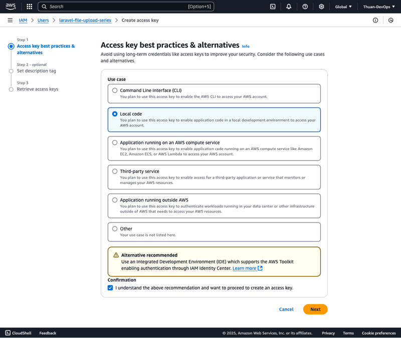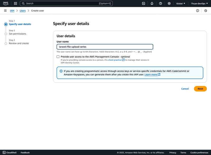 Đây là những bước thiết lập nền tảng, cực kỳ quan trọng trước khi bạn triển khai chức năng upload file lên Amazon S3 trong bất kỳ ứng dụng web hoặc mobile nào.