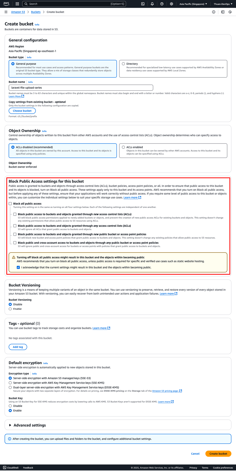 | Tên Bucket | laravel-file-upload-series |