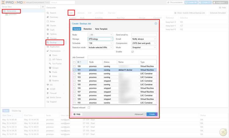 3. Lên lịch backup trên Proxmox