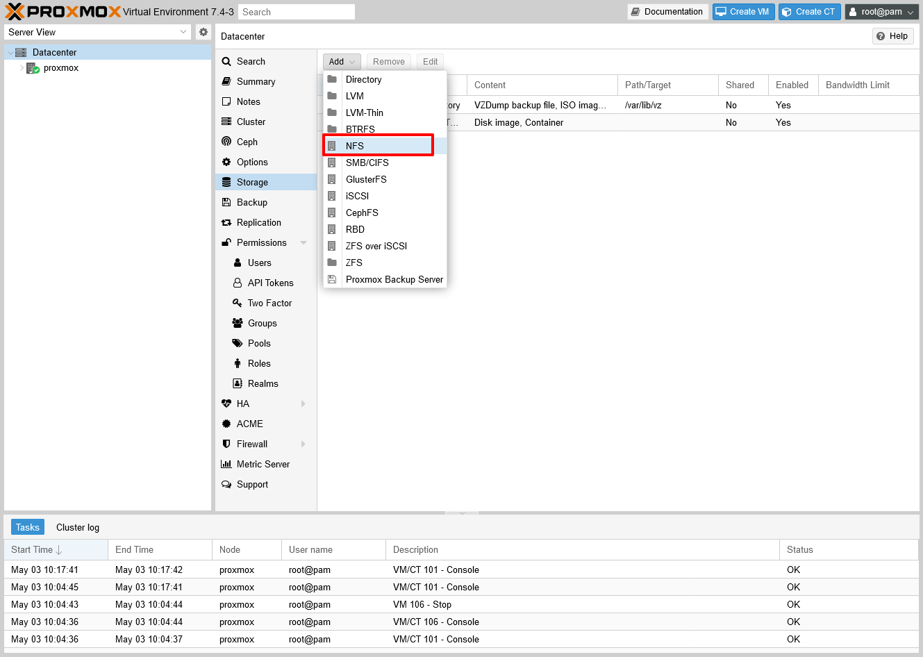 2. Tạo NFS Storage trên Proxmox