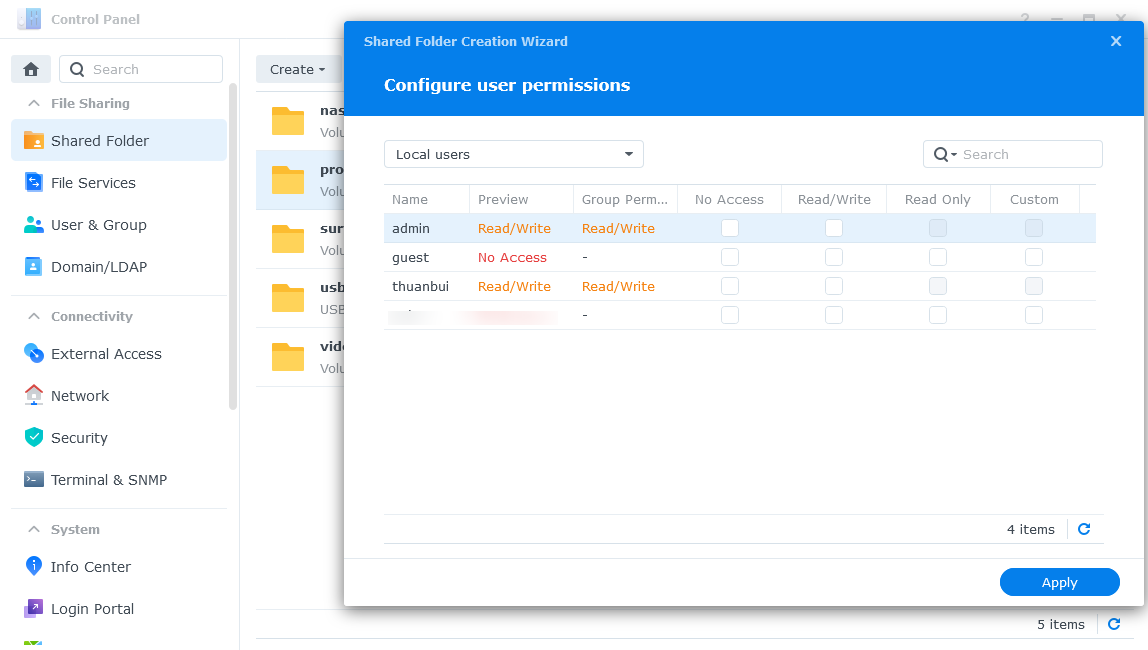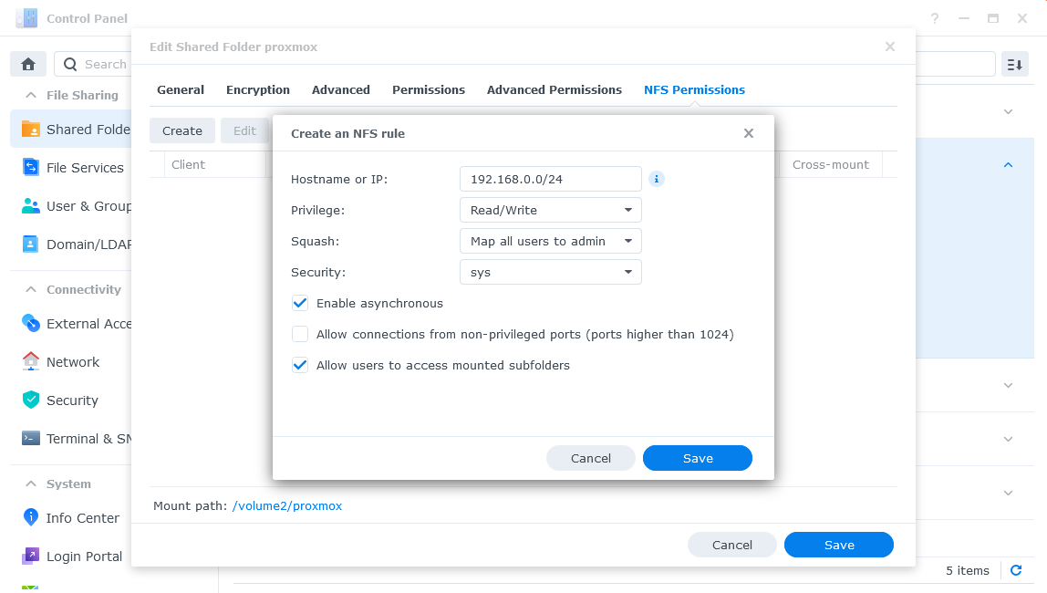 Kích hoạt NFS trên Synology