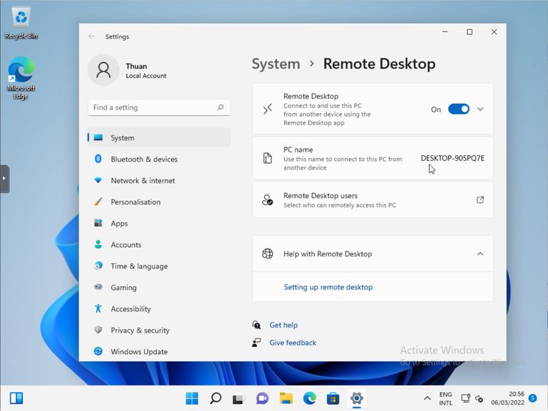 Dưới đây là hướng dẫn cách kích hoạt và sử dụng Remote Desktop trên Windows