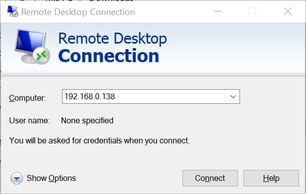 Nhập vào địa chỉ IP của máy ảo ở mục Computer, bấm Connect