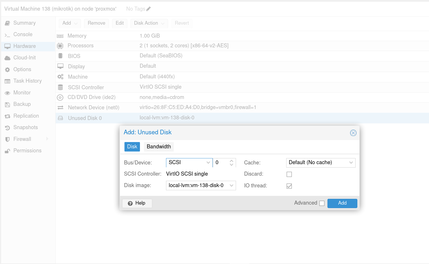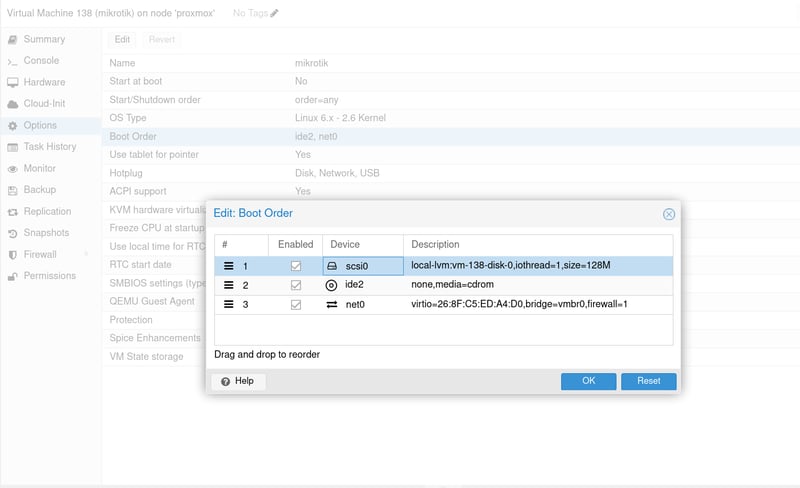 Để phục vụ nhu cầu vọc vạch RouterOS, mình thường sử dụng máy ảo RouterOS trên Proxmox để thử nghiệm. Nhờ vậy nếu có thao tác sai gì đó sẽ không ảnh hưởng đến kết nối mạng trong nhà.
