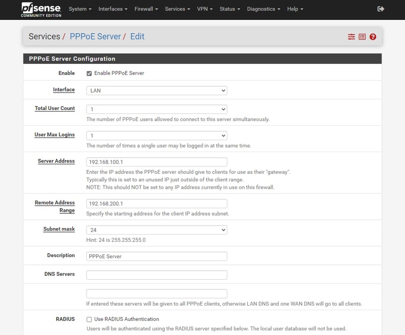 - Description: PPPoE Server