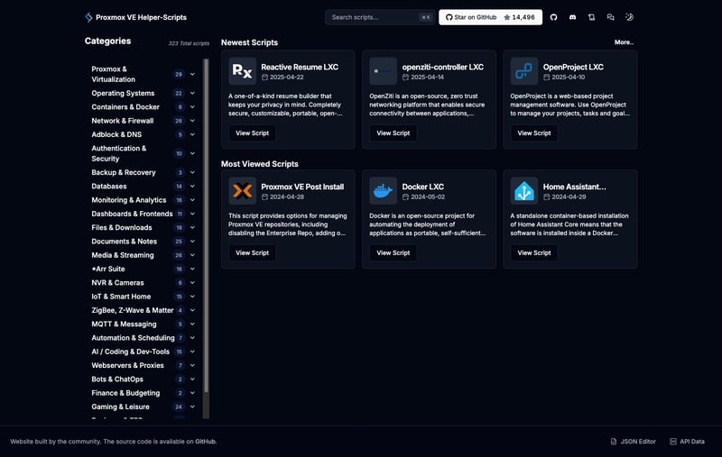 Proxmox VE Helper Scripts được phát triển nhằm đơn giản hóa việc cài đặt các ứng dụng mã nguồn mở trên nền tảng Proxmox VE. Trang github của dự án này có hơn 14.000 stars, cho thấy sự tin cậy của nó với các tín đồ homelab.